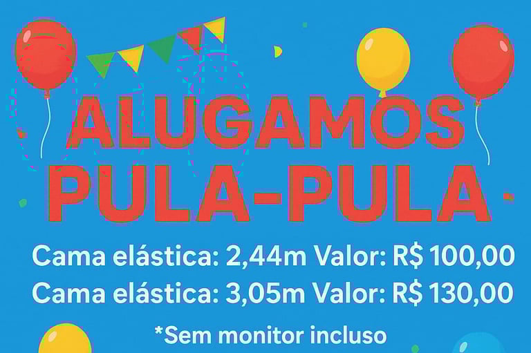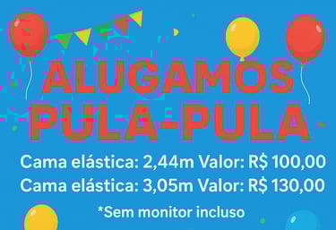Se você está organizando uma festa infantil e quer transformar o dia em uma experiência inesquecível, você está no lugar certo! Nós oferecemos aluguel de pula-pula, também conhecido como cama elástica ou pula-pula, com total segurança, qualidade e pontualidade.